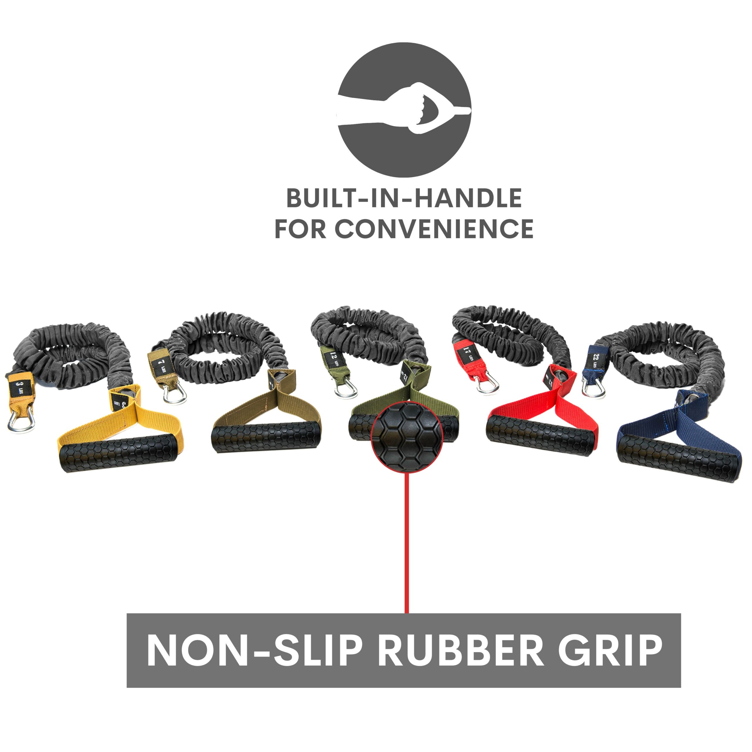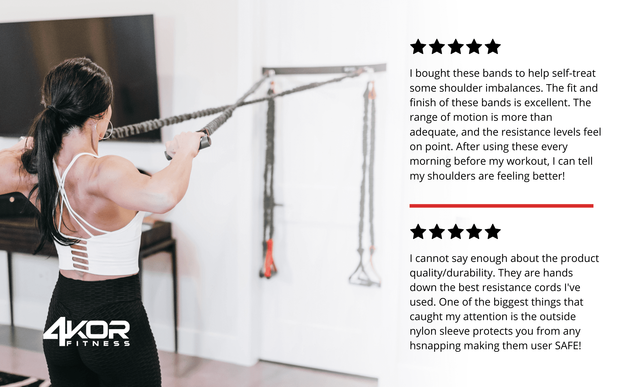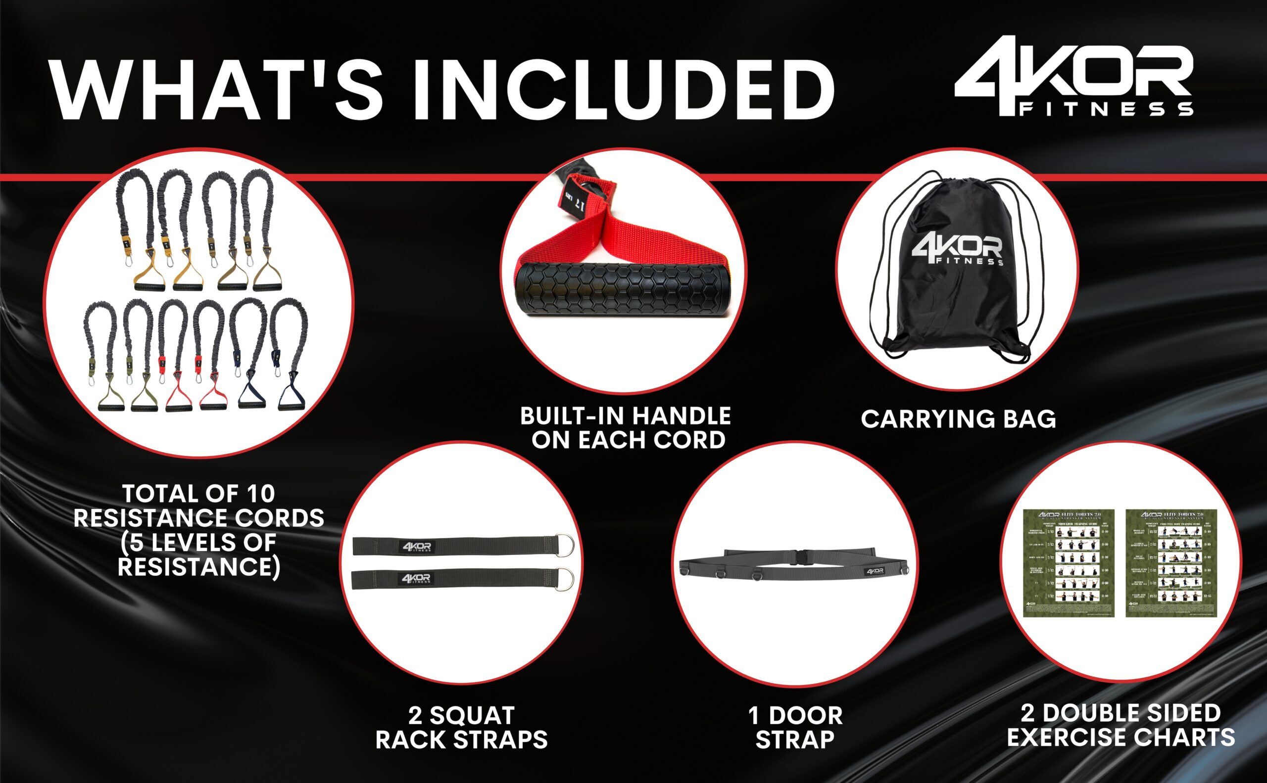 The 4KOR Resistance Cord Strength System for Shoulder & Core Strength Building comes in a 3 or 5 Resistance Level option.